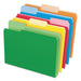 Double Stuff File Folders, 1/3-Cut Tabs, Letter Size, Assorted, 50/Pack. Perfect for overstuffing! Twice the capacity of standard folders, these hold over 250 letter-size sheets. Folder fits neatly in filing drawers. Lighter interior color helps prevent misfiling. Sturdy 11-point paper. File Folder Size Type: Letter; File Folder Color: Assorted; Color Family: Multicolor; File Folder Color Assortment: Blue; Bright Green; Orange; Red; Yellow.