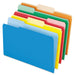 Interior File Folders, 1/3-Cut Tabs: Assorted, Letter Size, Assorted Colors: Blue/Green/Orange/Red/Yellow, 100/BoxFile folders fit inside hanging folders without obscuring tabs.
