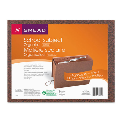 Portable project file has six pockets with repositionable tabs for easy subject identification. Includes blank and school subject inserts. Flap and...
