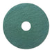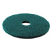 Heavy-Duty Scrubbing Floor Pads, 13" Diameter, Green, 5/Carton. Extra heavy duty pad removes dirt, spills and scuffs, leaving a clean surface ready for recoating. For use with Rotary Machine Speed of 175-600 rpm. Color-coded for easy job identification.