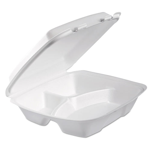 Insulated to accommodate both hot and cold foods. Non-absorbent. Stackable. Food Container Type: Hinged Take-Out Container; Material(s): Foam; Capa...