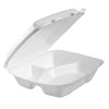 Foam Hinged Lid Container, 3-Compartment, 9.3 x 9.5 x 3, White, 100/Bag, 2 Bag/CartonInsulated for both hot and cold items.