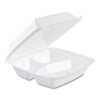 Foam Hinged Lid Container, 3-Compartment, 8 oz, 9 x 9.4 x 3, White, 200/CartonInsulated for both hot and cold items.