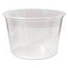 Microwavable Deli Containers, 8oz, Clear, 500/Carton. Package salads, soups and more in flavor- and odor-transfer-proof containers. Printable surface provides branding and labeling opportunities. Smooth-rolled, doubled-over rims enhance rigidity. Product line's standardized diameter delivers one-lid-fits-all convenience. Microwave-safe polyethylene withstands temperatures of up to 240°F. Food Container Type: Carryout; Material(s): Polypropylene; Capacity (Volume): 8 oz; Color(s): Clear.
