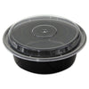 VERSAtainers, 1-Comp, Black/Clear, 16oz, 6"dia, 150/Carton. Versatile, economically priced containers accommodate both hot and cold foods. Tight-fitting, leak-resistant lid seals in heat and preserves your menu items' flavors. Compact nest-style stacking minimizes their storage footprint. Microwavable, dishwasher-safe and reusable. Round. Food Container Type: Carryout; Material(s): Polypropylene; Capacity (Volume): 16 oz; Color(s): Black/Clear.