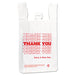 HDPE T-Shirt Bags, 14 microns, 12" x 23", White, 500/Carton. All-purpose white plastic bag with "Thank You" design. Ideal for use at checkout counters at grocery stores, restaurant to-go areas and more. Made out of HDPE film. Application: General Purpose; Thickness: 14 microns; Grade: Heavy-Duty; Material(s): Plastic.