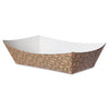 Sugarcane Food Trays, 5 lb, White/Kraft, 500/Pack, 2 Packs/Carton. Put your favorite foods on a boat, with durable, sugarcane paperboard trays built to withstand your toughest meals. Grease- and cut-resistant trays are perfect for fast food service. Freezer safe. Made with sugarcane, a rapidly renewable resource. Great for serving everything from sandwiches to chili fries. Food Container Type: Food Tray; Material(s): Sugarcane; Color(s): White/Kraft; Width: 9.5".