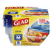 Entrée Food Storage Containers, 25 oz, 5/Pack, 6 Packs/Carton. Glad® Food Storage Containers are just the right size for storing leftovers. BPA free and microwave safe, you can safely heat food in these containers. Clean up is quick and easy because they are dishwasher safe. When you use Glad®, you know your food is receiving quality protection. Ideal for use in restaurants and other commercial facilities. Food Container Type: Carryout; Material(s): Plastic; Capacity (Volume): 25 oz; Color(s): Clear/Blue.