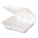 Foam Hinged Carryout Container, 3-Compartment, 8-4/9x7-5/8x2-3/8, White, 100/BagSnap It™ together and send to-go out properly.