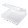 Snap-it Vented Foam Hinged Container 3-Comp White 9-1/4x9-1/4x3, 100/BG 2 BG/CT. Quality To Go® containers with venting to keep food from getting soggy. Equipped with Snap-It® closure for secure lock. Ideal for crispy or fried food and takeout. Transport safe and easy to store. Food Container Type: Carryout; Material(s): Foam; Color(s): White; Width: 9 1/4".