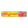 ClingWrap Plastic Wrap, 200 Square Foot Roll, Clear. Glad ClingWrap extends your food's freshness by keeping air out with a superior seal cling. With 3X the freshness based on moisture loss in produce versus no protection, keep your foods fresher longer. Its easy to use roll makes protecting your favorite foods fast and simple. This food wrap is easy to handle and grips to a variety of surfaces, such as glass and metal, making it useful for portioning, preparing, steaming, and protecting. ClingWrap can be used outside of the kitchen too. It is great to use for preventing leaks in toiletries when traveling, wrapping wet paint brushes to use later, or keeping items in drawers when moving. Glad ClingWrap contains no plasticizer, and is BPA free and microwave safe. Ideal for use in restaurants, cafeterias and other food service facilities. Glad protects and seals with ease. Material(s): Plastic; Length: 200 ft; Width: 12"; Packing Type: Box.