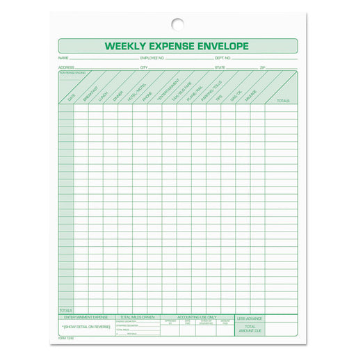 Record general expenses on front, detailed entertainment expenses on back. Collect receipts inside envelope. Form Size: 11 x 8 1/2; Forms Per Page:...