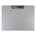 Plastic Brushed Aluminum Clipboard, Landscape Orientation, 0.5" Clip Capacity, Holds 11 x 8.5 Sheets, Silver. Durable construction and a brushed aluminum look make this clipboard an enduring classic. Low-profile safety clip eliminates the possibility of accidental openings, while making the clipboard easier to store in briefcases, file cabinets, laptop bags and more. Landscape Orientation. Holds Paper Size: 11 x 8.5; Clipboard Actual Size: 9w x 12.5h; Clipboard Material: Plastic; Clip Capacity: 0.5".