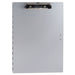 Tuffwriter Recycled Aluminum Storage Clipboard, 0.5" Clip Capacity, Holds 8.5 x 11 Sheets, Silver. Side-open design provides easy, one-handed access the clipboard's storage compartment. Self-locking latch keeps compartment securely fastened. Premium, low-profile clip holds up to a 1/2" stack of paper. Made of durable recycled aluminum. Holds Paper Size: 8.5 x 12; Clipboard Actual Size: 9.25w x 1.25d x 13.5h; Clipboard Material: Aluminum; Clip Capacity: 0.5".