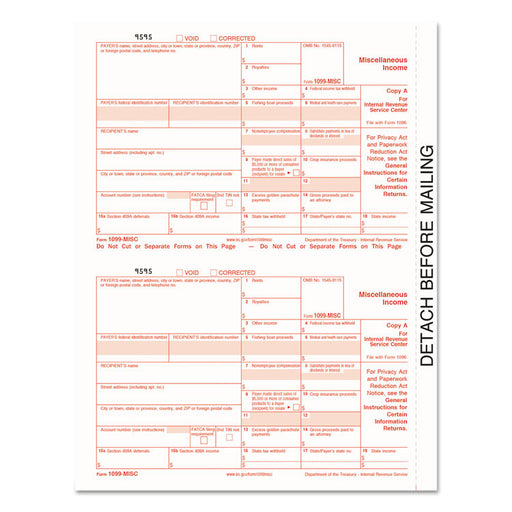 Use to report non-wage income. Updated each year to meet IRS regulations. Processes smoothly through inkjet and laser printers. Five-Part Miscellan...