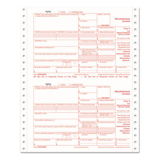 Use to report non-wage income. Updated each year to meet IRS regulations. Processes smoothly through inkjet and laser printers. Four-Part Miscellan...