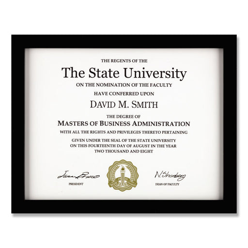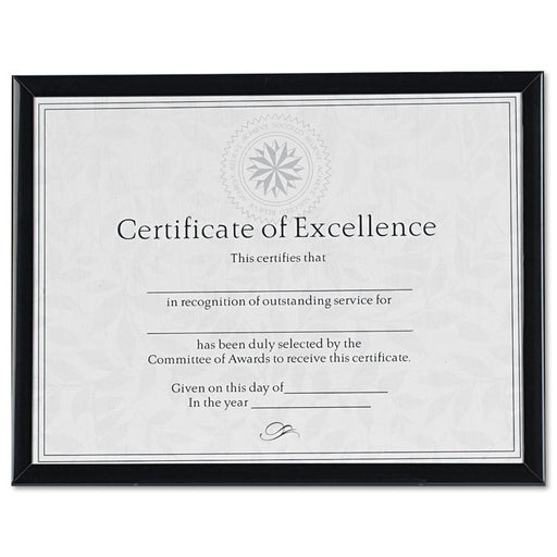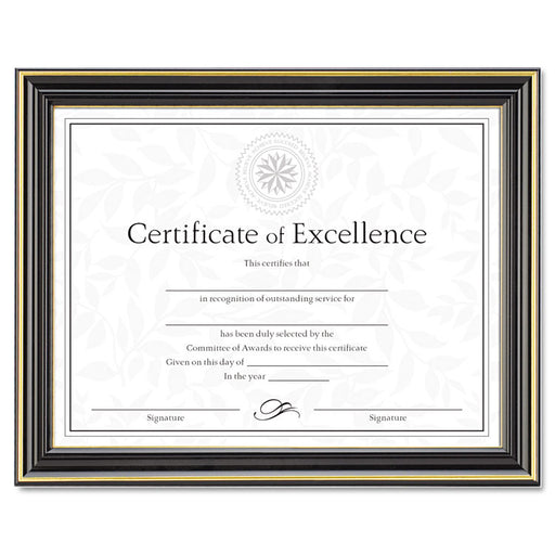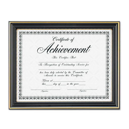 Gold-Trimmed Document Frame with Certificate, Plastic/Glass, 8.5 x 11, Black