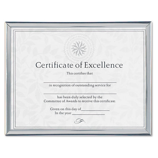 Value U-Channel Document Frame w/Certificates, 8 1/2 x 11, Silver