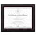 Stepped Award/Certificate Frame, 8 1/2 x 11, Black w/Walnut Trim. Handsome frame with black ridge and walnut accents showcases your award or certificate. Comes with a classic, beveled stepped edge. Versatile, it hangs vertically or horizontally. Easel back for desktop or wall mount. Includes a usable certificate. Frame Type: Certificate/Document; Frame Material: Plastic; Frame Color: Black/Walnut; Color Family: Black.