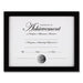 Wood Gallery Frame with Two-Way Easel, 8.5 x 11, Black. 1 3/4" deep contemporary wood document frame is ideal for your office, home or studio. Includes usable certificate. Also holds canvas. Can be displayed vertically or horizontally. All sizes can be displayed on the wall. Includes two-way easel. Frame Type: Document; Frame Material: Wood; Frame Color: Black; Height: 8.5".