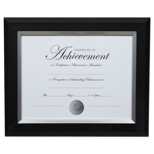 Handsome frame with black ridge and walnut accents showcases your award or certificate. Comes with a classic, beveled stepped edge. Versatile, it h...