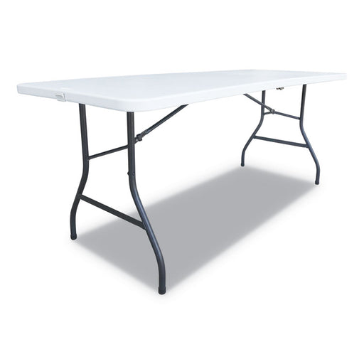 Lightweight table is great for both indoor and outdoor use. Conveniently folds in half for compact storage. Table features a fold-away carrying han...