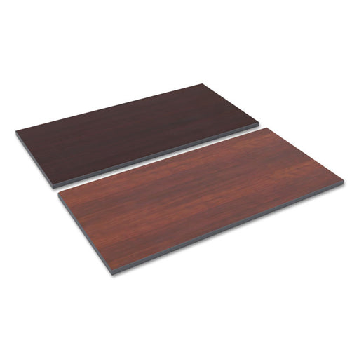 Reversible table tops have a different color and pattern on each side with coordinating dark gray edge banding. Use with Alera® bases to create hei...