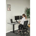 2-Stage Electric Adjustable Table Base, 27.5" to 47.2" High, Black. Set the perfect height when sitting or standing. Two-stage telescoping electric height-adjustable table base with standard up and down controls. Quick setup with fold-out legs requires minimal assembly. Durable base with 285-lb. lift capacity moves within a 19" range from 27" to 47" (not including worksurface). Attaches to most common worksurfaces ranging from 48" to 72" width; and 24" to 36" depth. Integrated cable management channels; includes 9.8 ft power cord. Dual motors with movement up to 0.8 inches per second depending on load. Strong black powder coated steel frame with cross bars provides stability and prevents racking. Adjustable leveling glides to compensate for uneven floors. Base Color: Black; Overall Width: 48" to 72"; Overall Depth: 24" to 36"; Height Minimum: 27.5".