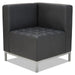 Alera QUB Series Corner Sectional, 26.38w x 26.38d x 30.5h, Black. Contemporary geometric reception room sectional set can be configured in endless possibilities. Tufted seat design with straight backs and arms for a modern yet comfortable look. Corner sectional can be configured with armless sectional and ottoman. Silver steel frames and legs adds style. Color: Black; Color Family: Black; Overall Width: 26.38"; Overall Depth: 26.38".