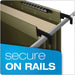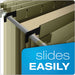 SureHook Hanging Pocket File, Letter Size, 1/5-Cut Tab, Standard Green, 4/Pack. Revolutionary SureHook® features built-in tension springs. Stronger, sturdier rods and hooks bend less, and the folders slide with ease. Full-height gussets will not catch on drawer rails. 3 1/2" expansion. Polylaminate reinforced top and bottom edges provide superior durability. Folder Size Type: Letter; Max Folder Expansion: 3.5"; Folder Color: Standard Green; Color Family: Green.
