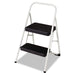 2-Step Folding Steel Step Stool, 200 lb Capacity, 17.38w x 18d x 28.13h, Cool Gray. Steel step stool features strong metal steps with ribbed, slip-resistant treads. Continuous rear-leg support provides added stability. Durable Opti-Bond™ powder-coated finish resists scratches. Nonmarring, skid-resistant front legs and back glides. Convenient handle for easy carrying. Number of Steps: 2; Step Stools Type: Folding Step Stool; Working Height: 28.13"; Frame Material: Steel.