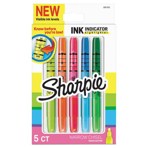 Sharpie Ink indicator highlighters have a see-through barrel that lets you know how much ink is inside so you aren't left high and dry. The eye-cat...