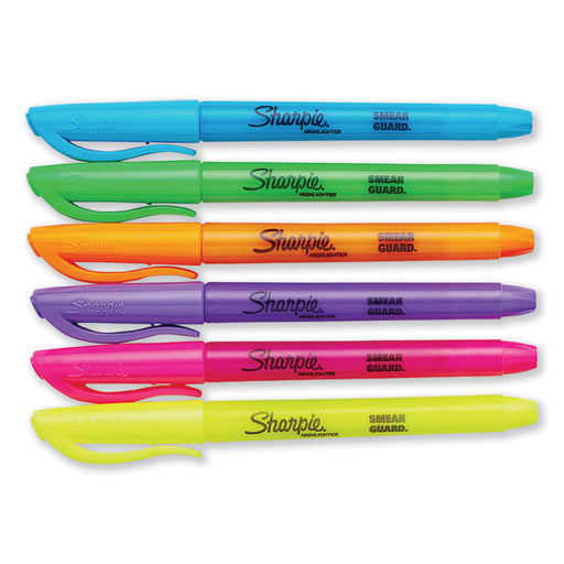 Ergonomic, pen-style highlighter features a unique, see-through tip that eliminates blind spots. SMEAR GUARD™ ink technology resists smearing of ma...