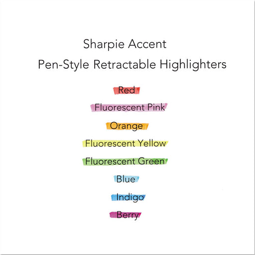 Highlight or underline notes with Sharpie Accent Retractable Highlighters. These highlighters feature easy-glide narrow chisel tips, fast-drying o...