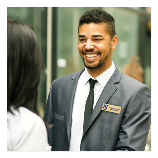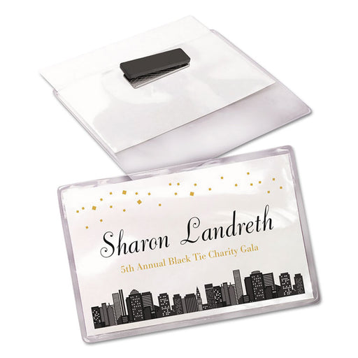 Strong, heavy-duty magnet holds name badge in place. Safe for any style of clothing without damaging material or flipping over. Features an easy-to...