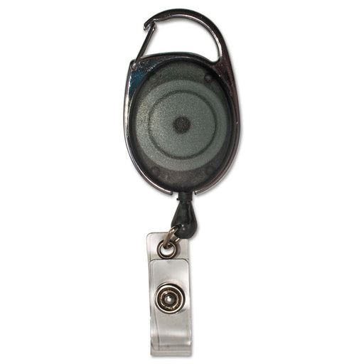 Traditional carabiner style badge reel with retractable cord. Carabiner clips securely to belt loops, briefcases and purse straps. Retractable cord...