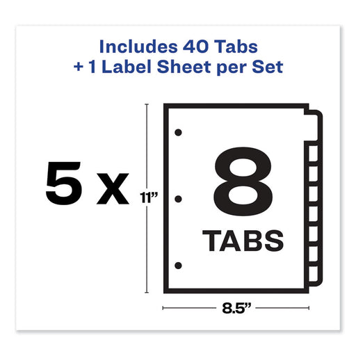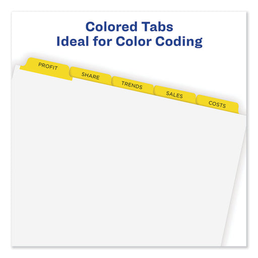 Economical white dividers for a variety of binder organization needs. Easy to customize self-adhesive labels right from your printer. Gold reinforc...