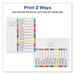 Customizable TOC Ready Index Multicolor Dividers, 1-12, Letter. Organized documentation makes a business run like a well-oiled machine. These Ready Index® Table of Contents Dividers help you stay organized so you can locate documents quickly and efficiently. They feature preprinted multicolor tabs that can be displayed in either landscape or portrait format. Using free templates from Avery Design & Print you can customize the included table of contents page and print in minutes. Organization and efficiency—makes life better for your business. For laser and inkjet printers. Contemporary Colors. Index Divider Style: Arabic Numeric; Index Divider Size: 11 x 8.5; Punched/Unpunched: 3-Hole Punched; For Use With: Ring Binders.