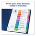 Customizable TOC Ready Index Multicolor Dividers, 10-Tab, Letter, 24 Sets. Organized documentation makes a business run like a well-oiled machine. These Ready Index® Table of Contents Dividers help you stay organized so you can locate documents quickly and efficiently. They feature preprinted multicolor tabs that can be displayed in either landscape or portrait format. Using free templates from Avery Design & Print you can customize the included table of contents page and print in minutes. Organization and efficiency—makes life better for your business. For laser and inkjet printers. Uncollated Sets—Perfect for creating multiple sets. Index Divider Style: Arabic Numeric; Index Divider Size: 11 x 8.5; Punched/Unpunched: 3-Hole Punched; For Use With: Ring Binders.