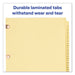 - Laminated tabs feature bold black printing on front and back for maximum readability.