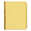Preprinted Laminated Tab Dividers w/Gold Reinforced Binding Edge, 25-Tab, Letter. More efficient organization for alphabetical chronological, or numerical sorting. The process becomes simple with handy preprinted tabs to help you get started organizing your paperwork instantly. Gold binding edge is reinforced so you can turn pages secure in the knowledge that your dividers won't tear easily from the binder rings. Easy-to-read black lettering helps you find the right section at a glance. Index Divider Style: Alpha; Index Divider Size: 11 x 8.5; Punched/Unpunched: 3-Hole Punched; For Use With: Ring Binders.