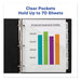 - Clear or colored plastic dividers add impact while making it easier to flip between sections.