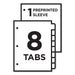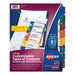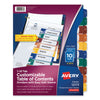 Ready Index Customizable Table of Contents, Asst Dividers, 8-Tab, Ltr, 6 Sets. Make last-minute changes to reports and documents with these Ready Index® Easy Edit™ Table of Contents Dividers. Thanks to the preformatted see-through sleeve, you can easily finalize the table of contents page. Using free templates from Avery Design & Print to customize section titles and then print in minutes. Put the table of contents page in the sleeve and presto; precisely matching colors and divider tabs that look professional. For laser and inkjet printers. Index Divider Style: Arabic Numeric; Index Divider Size: 11 x 8.5; Punched/Unpunched: 3-Hole Punched; For Use With: Ring Binders.