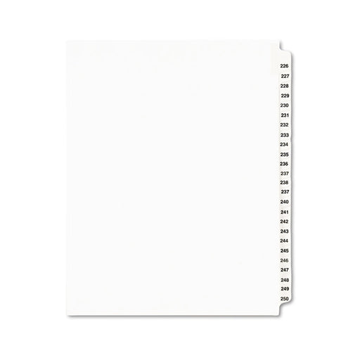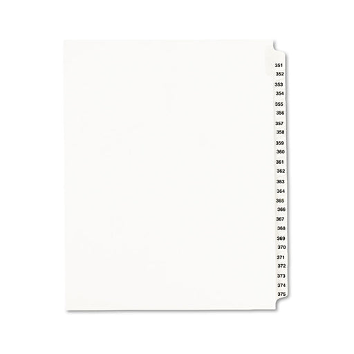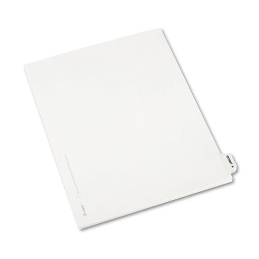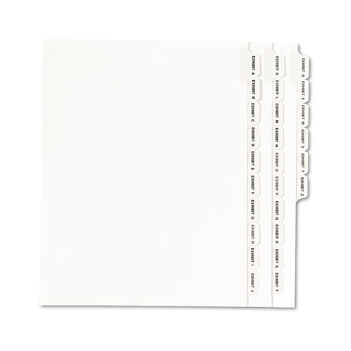 Rip Proof™ reinforced tabs printed on both sides with exhibit letter. Easy-to-read Helvetica bold type stands out. Unpunched for flexibility in bin...