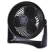 Super Turbo Three-Speed High-Performance Fan, Black. The versatile aerodynamic wind tunnel design provides you with fast, focused cooling. The three speed motor (high, medium and low) allows you to find the breeze that's just right for you. The variable tilt head pivots a full 90° for use as an air circulator. Can be used on your desk or on the wall (hardware included). Fan Head Size: 9"; Fan Type: Desk; Color(s): Black; Tilt (Degrees): 90°.