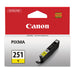 6516B001 (CLI-251) ChromaLife100+ Ink, 330 Page-Yield, Yellow. The CLI-251 inks dry instantly so your photos are ready to be enjoyed as soon as they come out of the printer. ChromaLife100+: The combination of inks and media deliver exceptional beauty and longevity. Genuine Canon ink tanks allow free access to exciting exclusive content via Creative Park Premium. Device Types: Inkjet Printer; Color(s): Yellow; Page-Yield: 330; Supply Type: Ink.