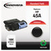 Remanufactured Black Toner, Replacement for 45A (Q5945A), 18,000 Page-Yield. Innovera® remanufactured monochrome laser print cartridges provide the same quality and performance as the national brands at an affordable price. These cartridges are remanufactured in ISO 9001:2008-certified facilities using the highest quality chemical toners and components to ensure they meet or exceed national brand page yield and print performance—guaranteed. Device Types: Laser Printer; Color(s): Black; Page-Yield: 18,000; Supply Type: Toner.