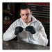 A20 Breathable Particle Protection Coveralls, Zip Closure, 3X-Large, White. Ultra-durable, patented Reflex* design minimizes the potential for rips and tears while providing more chest room than average. SMS barrier fabric ensures superior dry particulate and light liquid spray holdout. Seamless front minimizes the potential for wear-related gaps throughout the primary exposure area. Lightweight, air-permeable cloth enhances wearing comfort. Anti-static rating provides extra piece of mind when working near sensitive electronics. Hood, Elastic Back, Wrists and Ankles. Apparel Type: Coveralls; Material(s): MICROFORCE* Barrier SMS Fabric; Color(s): White; Color Family: White.