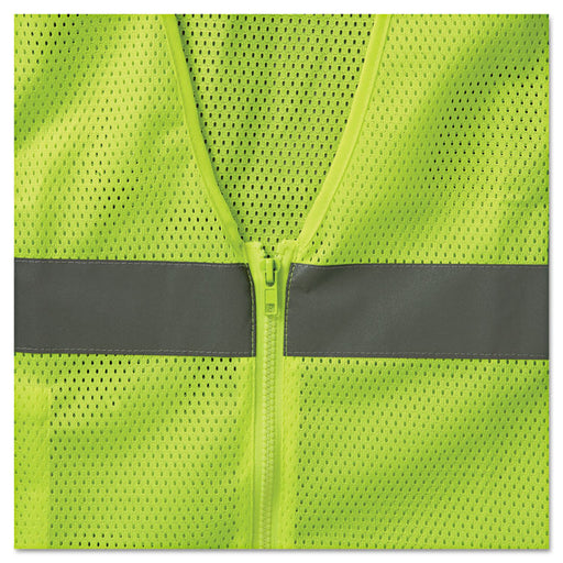 Sturdy, ANSI-compliant polyester mesh makes this brightly colored vest an excellent safety choice for use in poorly lit areas. A zipper closure ens...