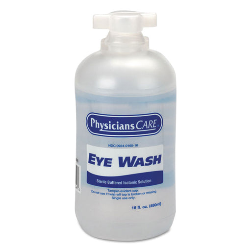 Single-use refill bottle of isotonic buffered saline solution for eye wash wall station. Capacity (Volume): 32 oz; Packing Type: Bottle; Descriptio...